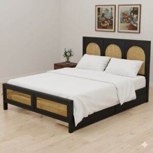 Price range: ₹73,500.00 through ₹78,500.00Kiro Solid Wood Rattan Modern Frame Bed