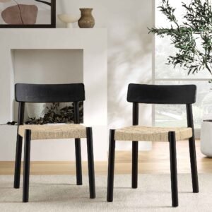 Bira Set of 2 Solid Wood and Jute Dining Chairs