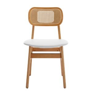 Dipa Upholstered Solid Wood Rattan Back Dining Chair