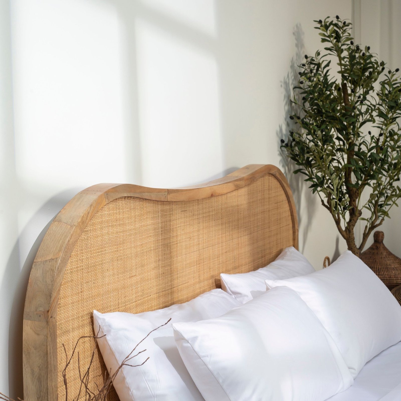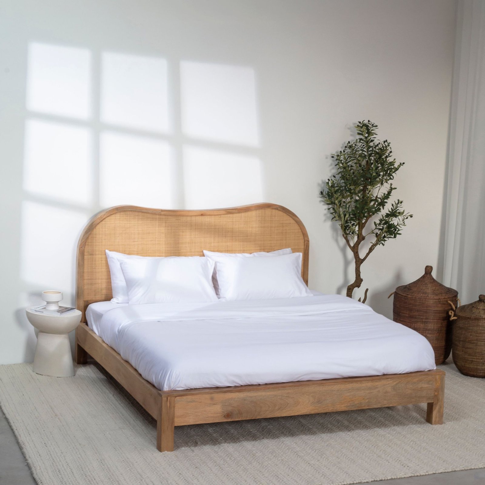 The Bern Solid Wood Rattan Bed blends natural charm with timeless craftsmanship. Featuring a gracefully arched rattan headboard framed in solid wood, its light honey tones and intricate texture bring warmth and sophistication to any bedroom. The sturdy frame boasts smooth wood grains and a minimalist silhouette, making it perfect for boho, modern, or rustic interiors. Designed to celebrate the natural beauty of mango wood and rattan, this bed offers an eco-friendly, stylish retreat that enhances your space effortlessly.
