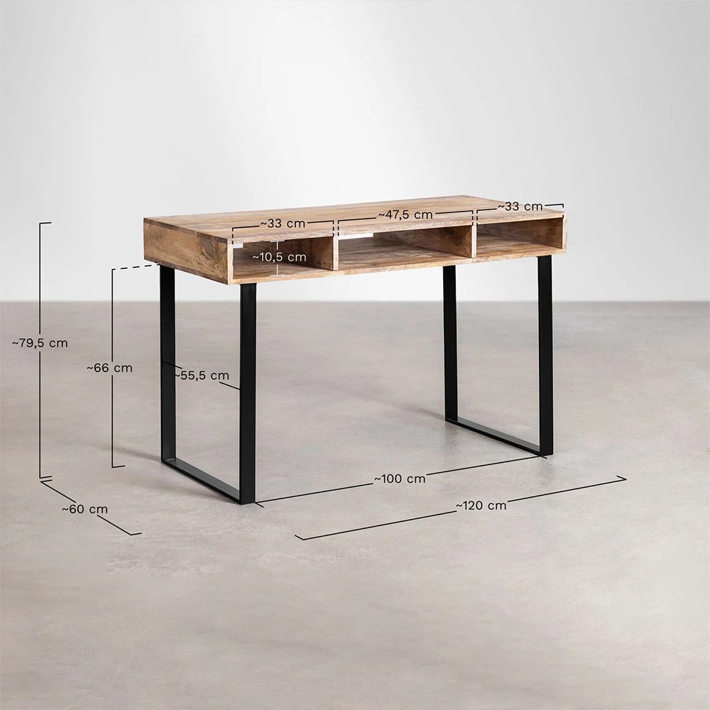 The Harmony Comfort Solid Wood Desk is essential in any home, whether for study or work. Its structure is made of resistant solid mango wood and its legs are made of iron. It offers a lot of capacity for organization thanks to its 3 compartments that it has under the tabletop. With an industrial style that will fit well with any other, you have at home. One of its advantages is that it does not require assembly and its large work area allows you more comfort. A modern but industrial-style desk, robust and solid. Perfect for long study afternoons.