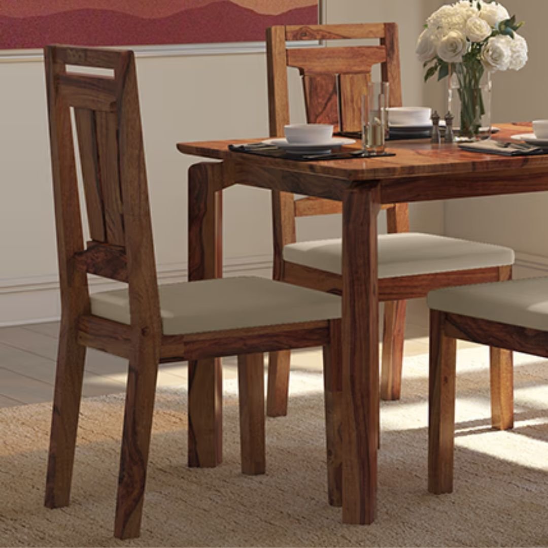 Wood: Elara Solid Wood Classic Dining Chair is made of premium Solid wood and is highly durable. The solid wood construction makes it very sturdy and long-lasting.