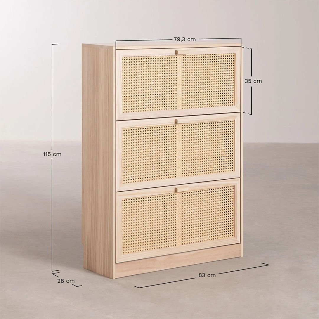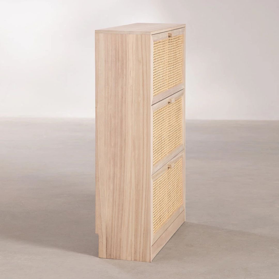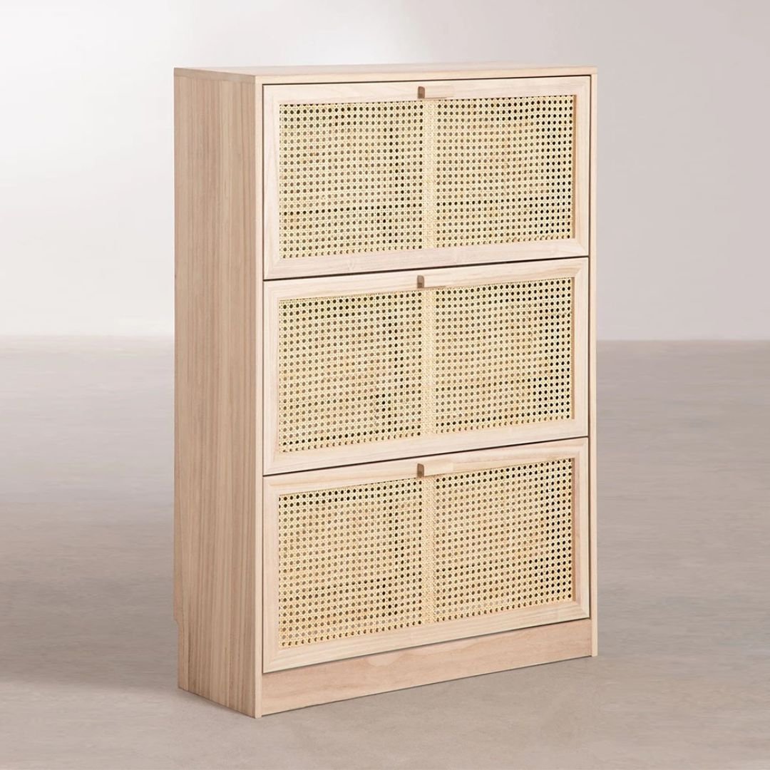 We bet as always for elegance and comfort, that is why we chose the Emma Solid Wood Rattan Shoe Cabinet, the perfect complement to keep your shoes organized and in order. It has a simple and functional design, becoming the perfect accessory to give a natural touch to your environment. Made of solid wood, it has 3 drawers with rattan details to store your shoes and presents finishes that will allow you to fit it into any decorative style. Get this jewel from the Ralik collection, a piece that will not disappoint and you can combine with the other products.
