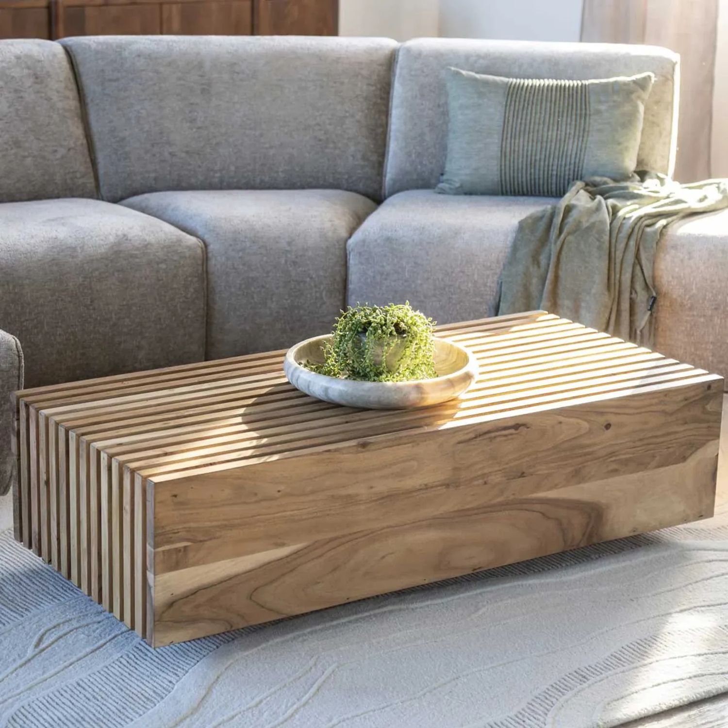In summary, a Exon Solid Wood Fluted Coffee Table is a visually appealing piece of furniture that adds a touch of nature-inspired elegance to your living space. Its blend of natural materials and functional design makes it a popular choice for those looking to create a cozy and inviting atmosphere in their homes.