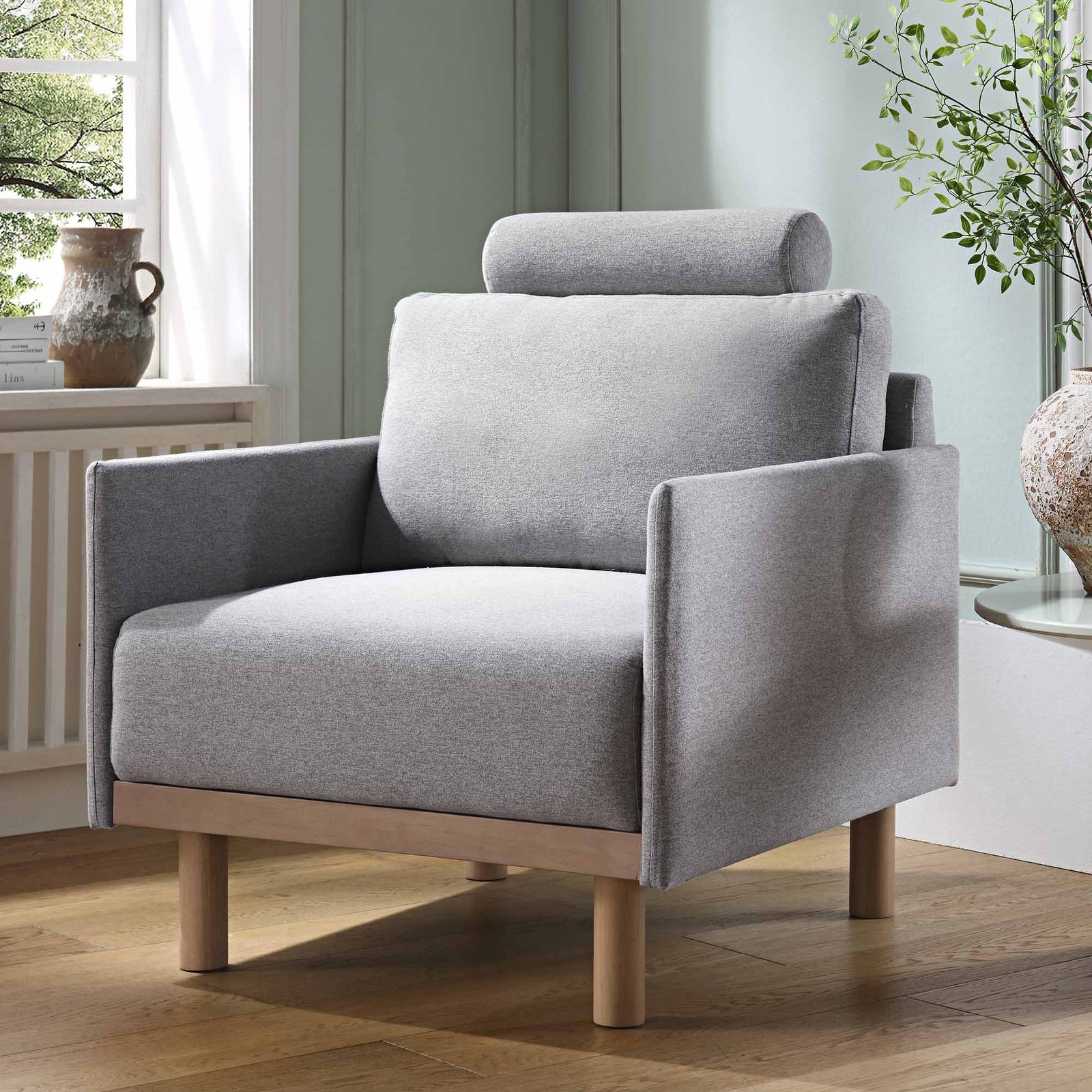 - Upholstered in soft, wool like fabric in grey, beige, navy and green colour that suits any home decor