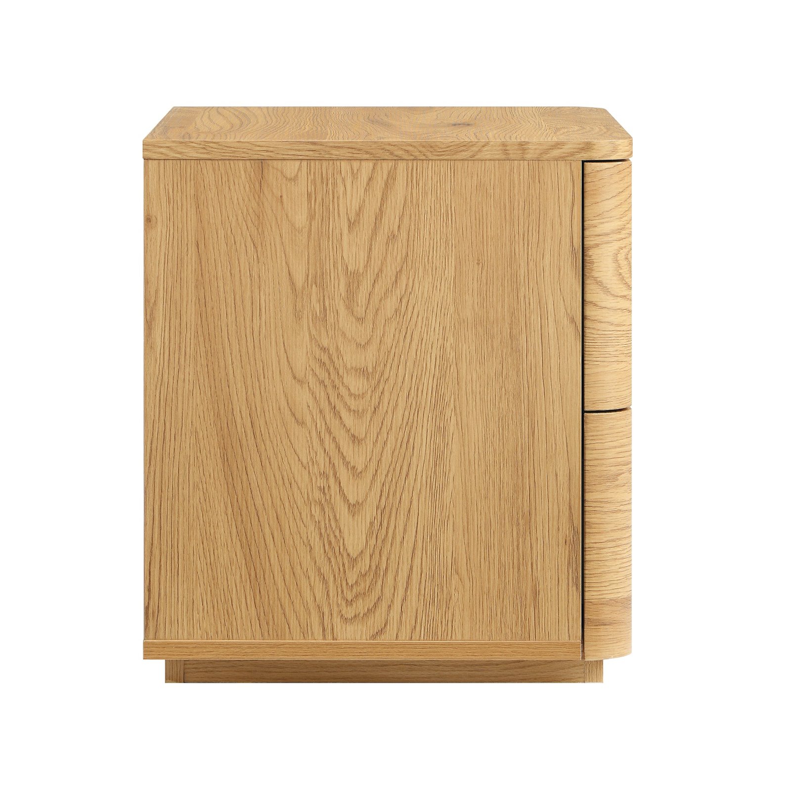 - The bedside table features oak effect finish, with the curved edge detail allowing it to softly blend in with your bedroom decor.