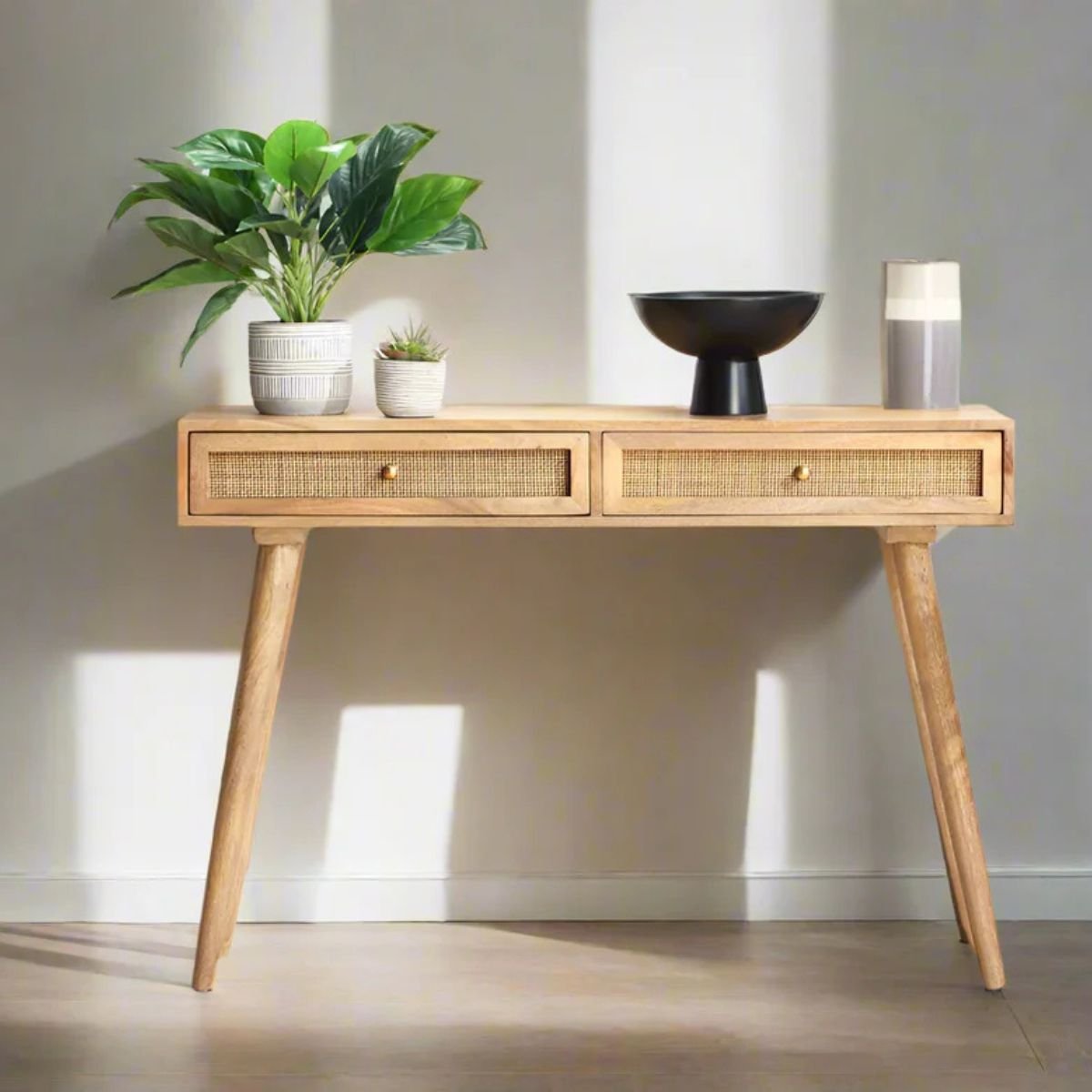 Mako Solid Wood Rattan 2-Drawer Console Table