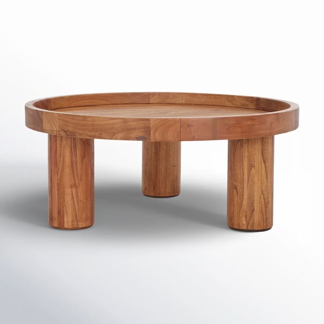 Elevate your living room with the sleek and stylish Nilon Solid Wood Coffee Table. Constructed from durable solid wood, this table features a rich brown finish and is supported by three cylindrical legs. Its minimalist design allows your sofa and statement rug to take center stage, while the raised edge prevents spills and messes. Measuring 15″ in height and 36″ in width, it’s the perfect size for displaying books, decor, and remote controls. A functional and chic addition to your space. Made from long-lasting solid wood, the Nilon Solid Wood Coffee Table boasts a sophisticated brown finish and three sturdy legs. Its clean design allows your couch and standout carpet to shine, while its raised edge helps protect against spills and clutter. At 15″ tall and 36″ wide, it’s the ideal showcase for books, decorations, and remotes.