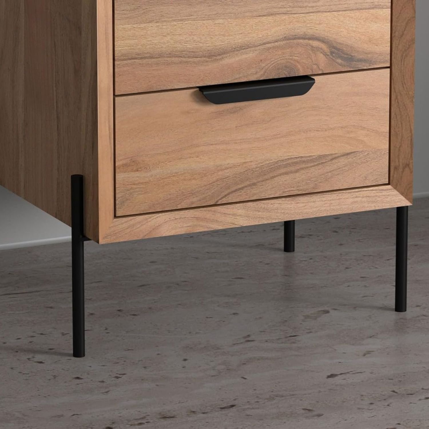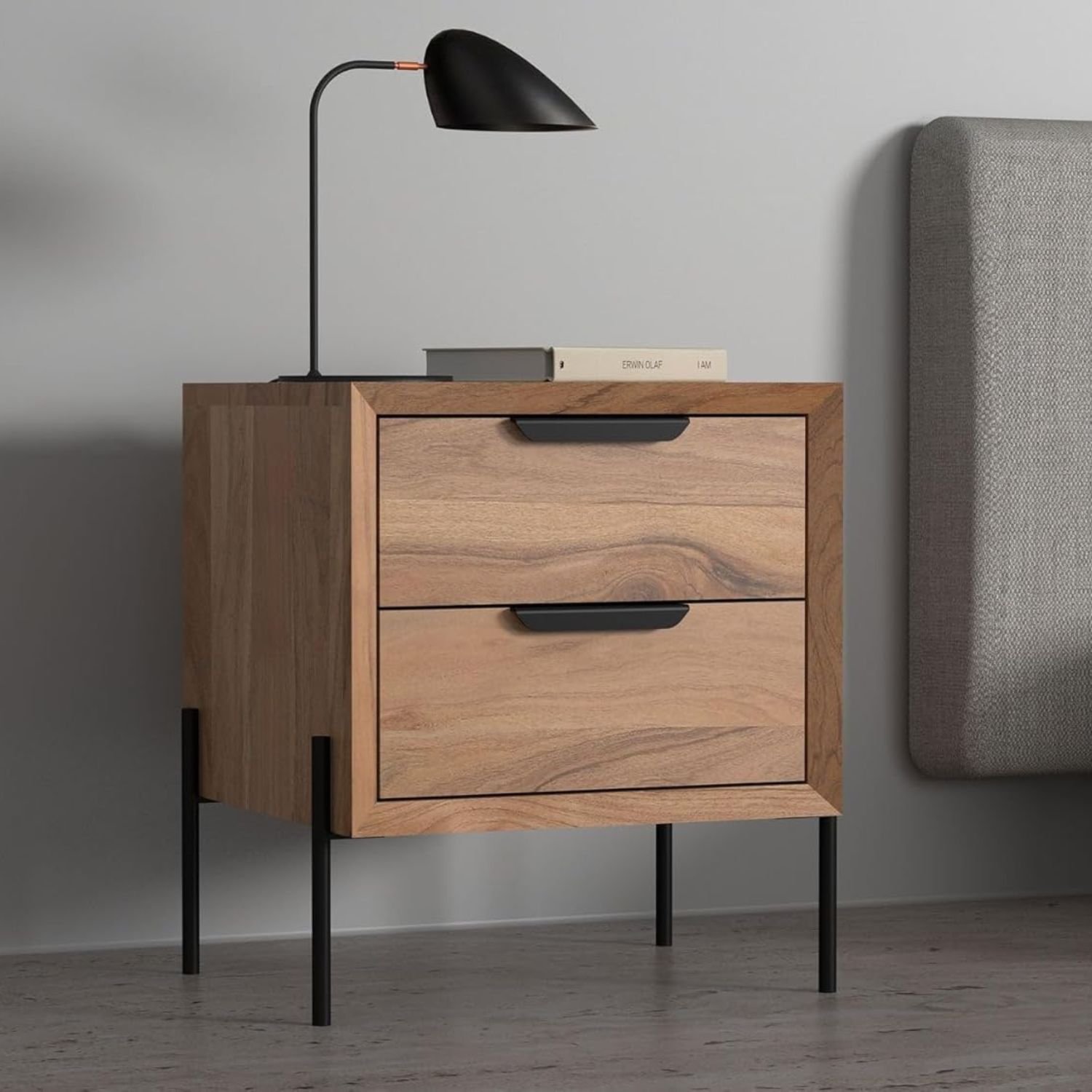 - This Nivo Solid Wood Metal Bedside Table is ideal for storing small items or clothes.