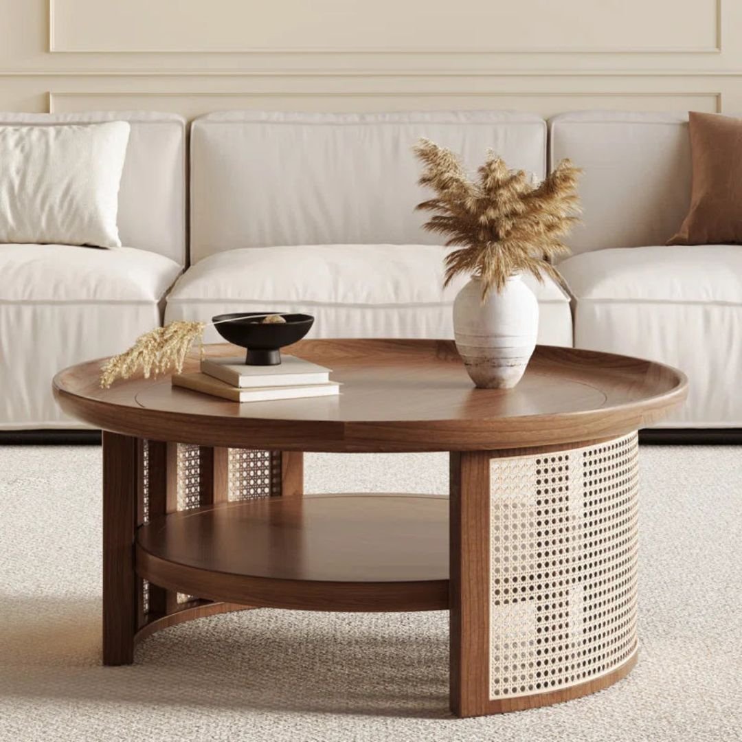 Olan Solid Wood Rattan Round Coffee Table