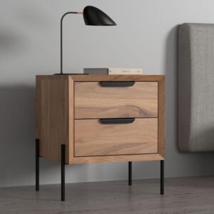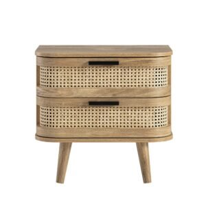 Curved Rattan Solid Wood 2-Drawer Bedside Table