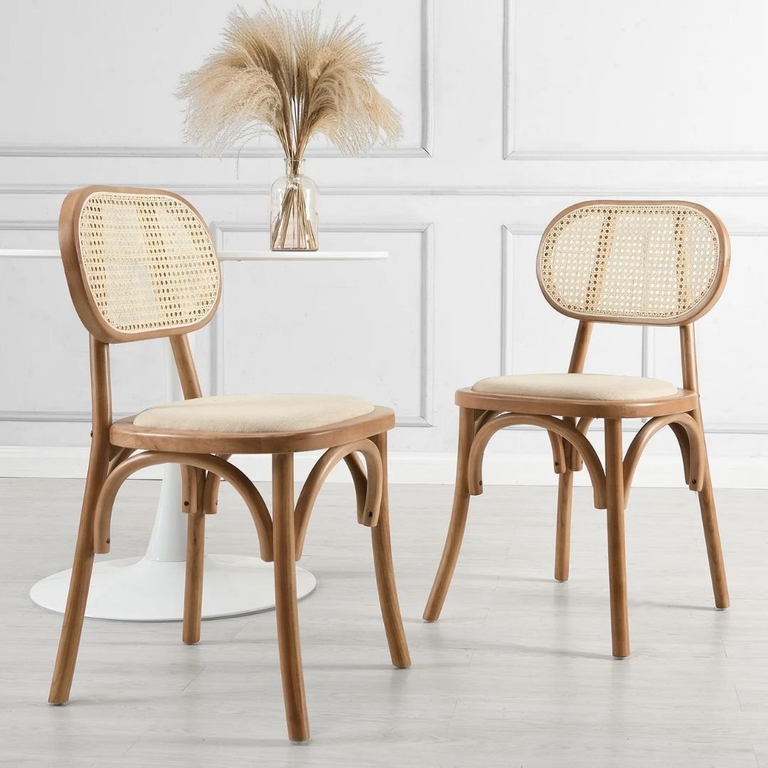Kaya Set of 2 Cane Rattan and Upholstered Dining Chairs