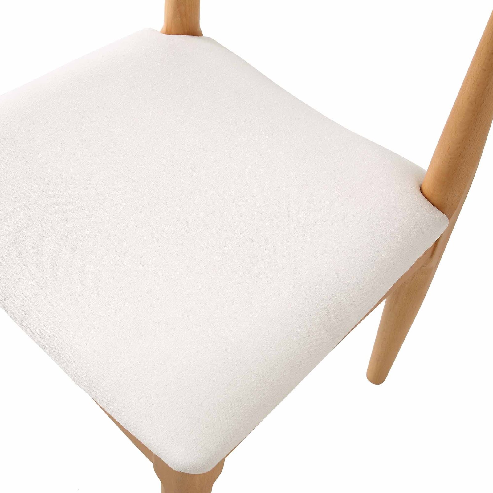 - The chairs are crafted from solid wood, featuring curved backrest and padded seat.
