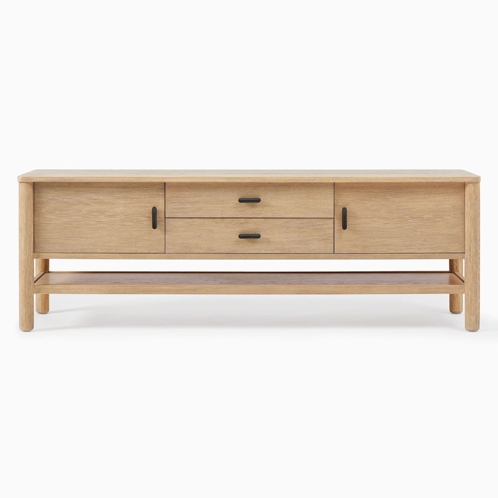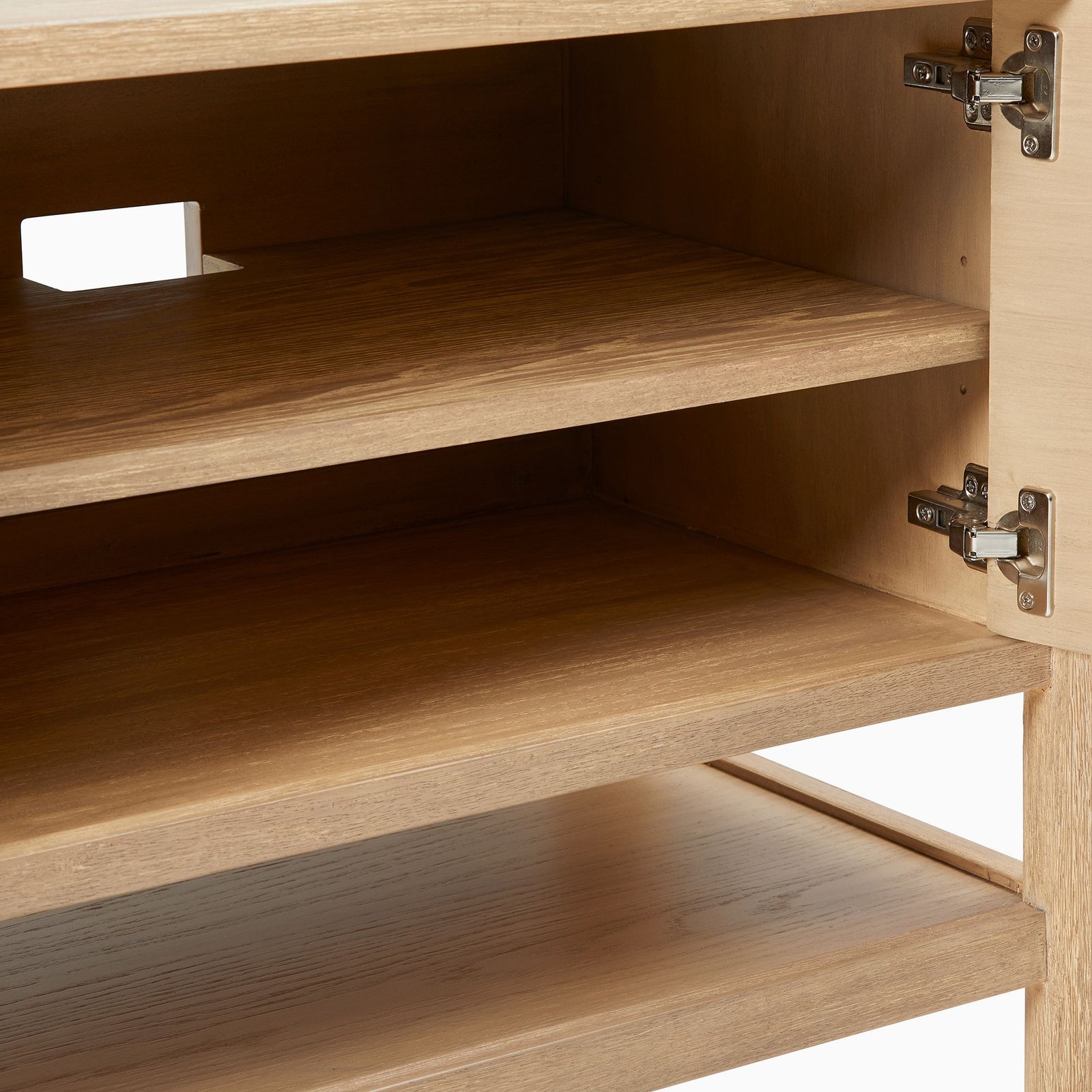 A mix of open and closed storage lets you choose when to display or hide away. Covered in a water-based Dune finish. All wood is kiln-dried for added durability.