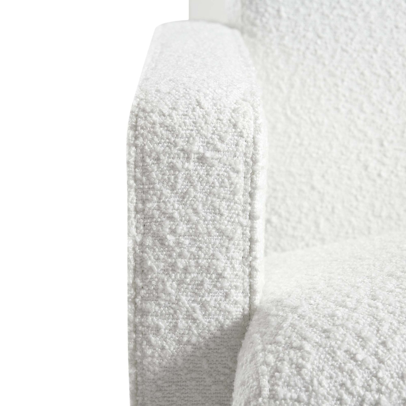 - The chair is upholstered with beautiful textured boucle fabric, ideal for neutral tone home décor.