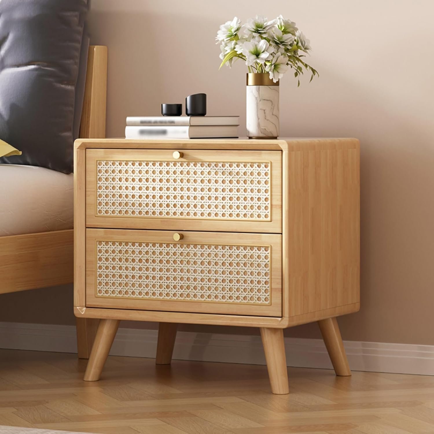 - Vida Solid Wood Rattan Nightstand: With an elegant wood colour and natural rattan drawer door front, our nightstand is a combination of modern and stylish. It brings a rustic farmhouse touch and can be perfectly matched with your existing furniture.