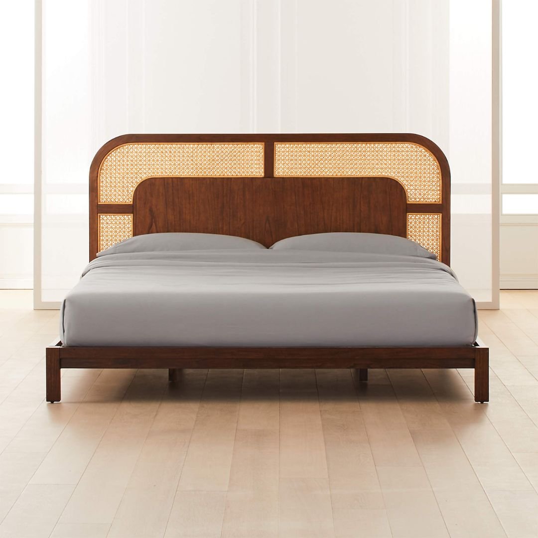 Organic materials and craftsmanship shine in this Peso Solid Wood and Cane Bed. Natural rattan is woven by hand into a geometric pattern on the headboard and framed in mid tone wood.