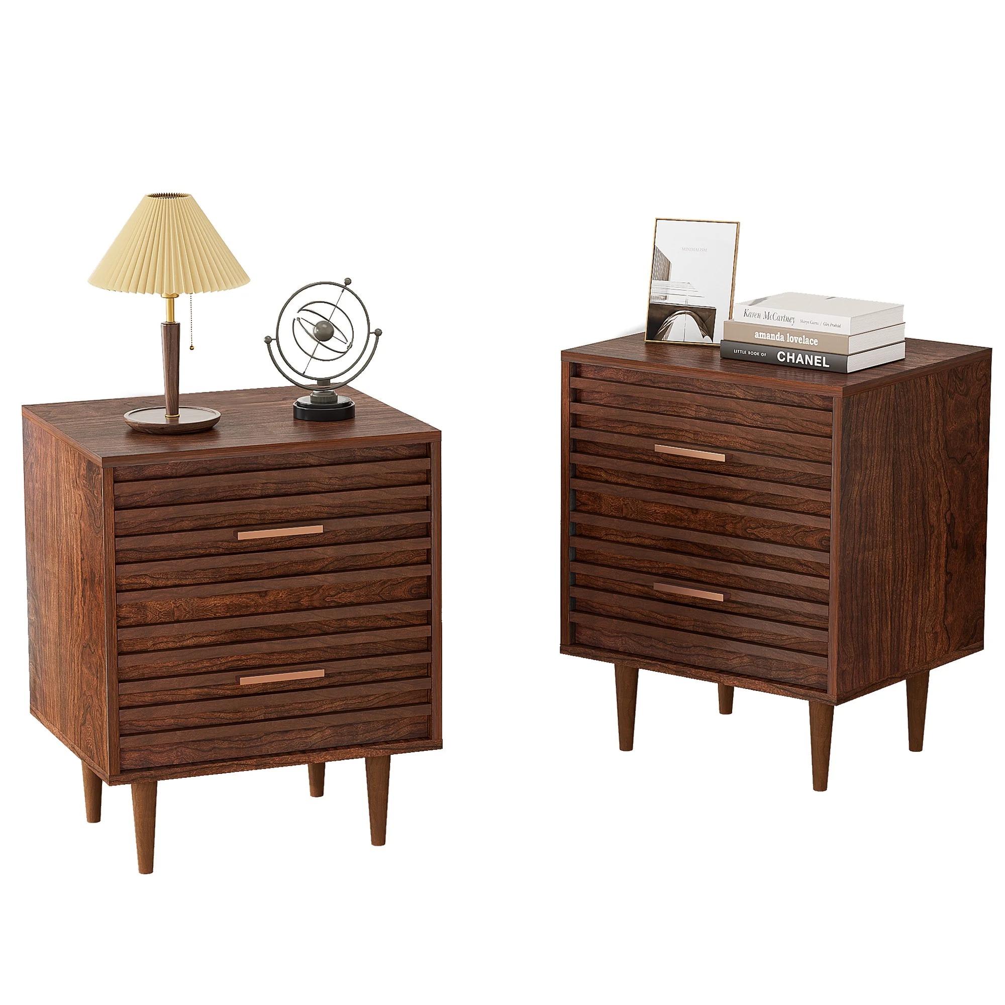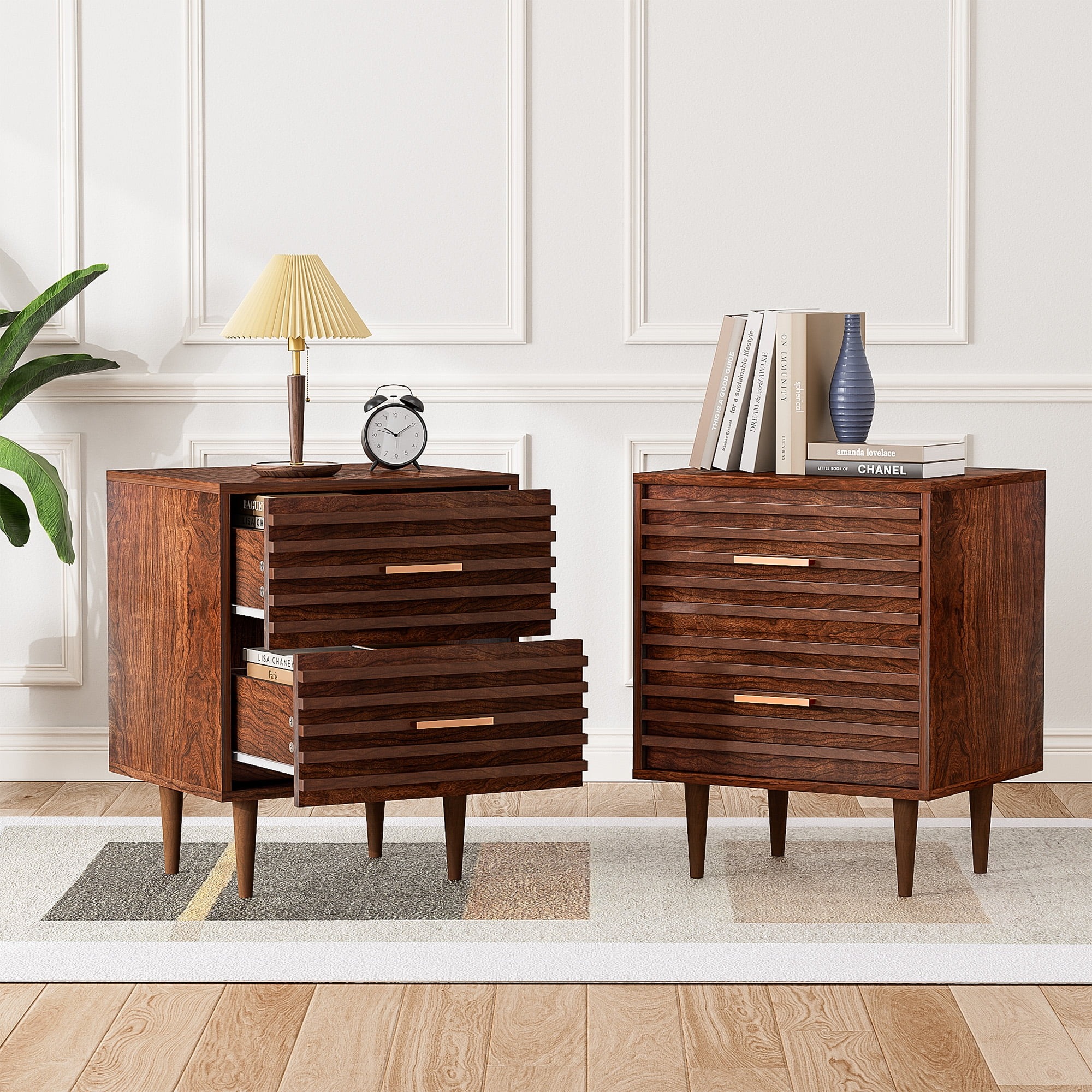 Multipurpose Nightstand with Large Storage Space: Our set of 2 wooden nightstands features with 2 spacious drawers and a generous tabletop, making it perfect for use as a bedside table, sofa end table, or even a file cabinet. This multifunctional piece is compatible with a variety of décor styles, making it a great choice for any living room, bedroom or dorm.