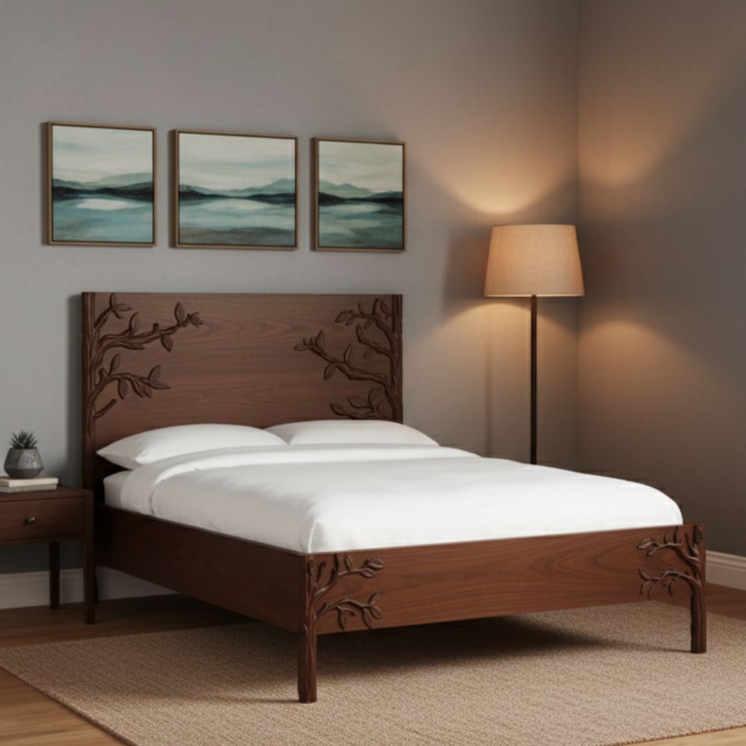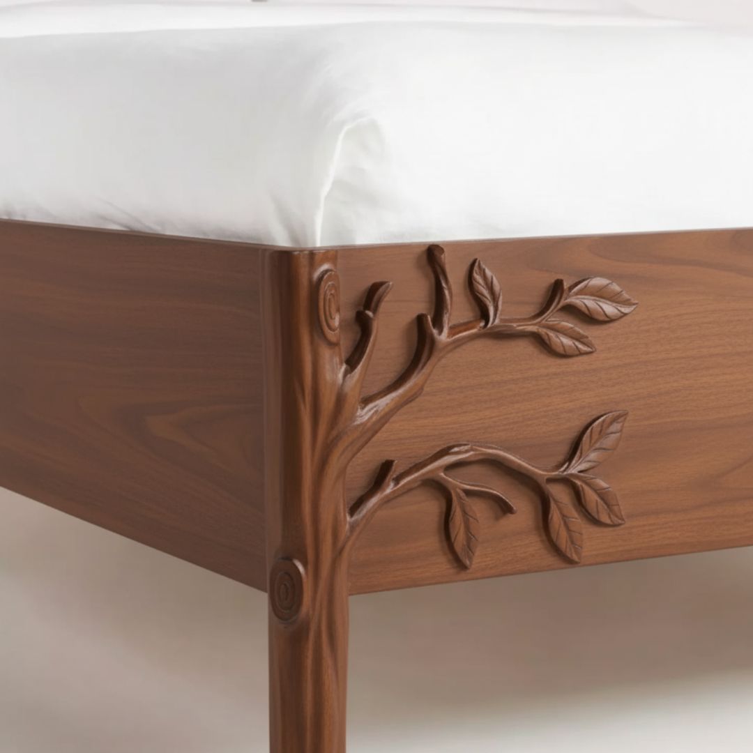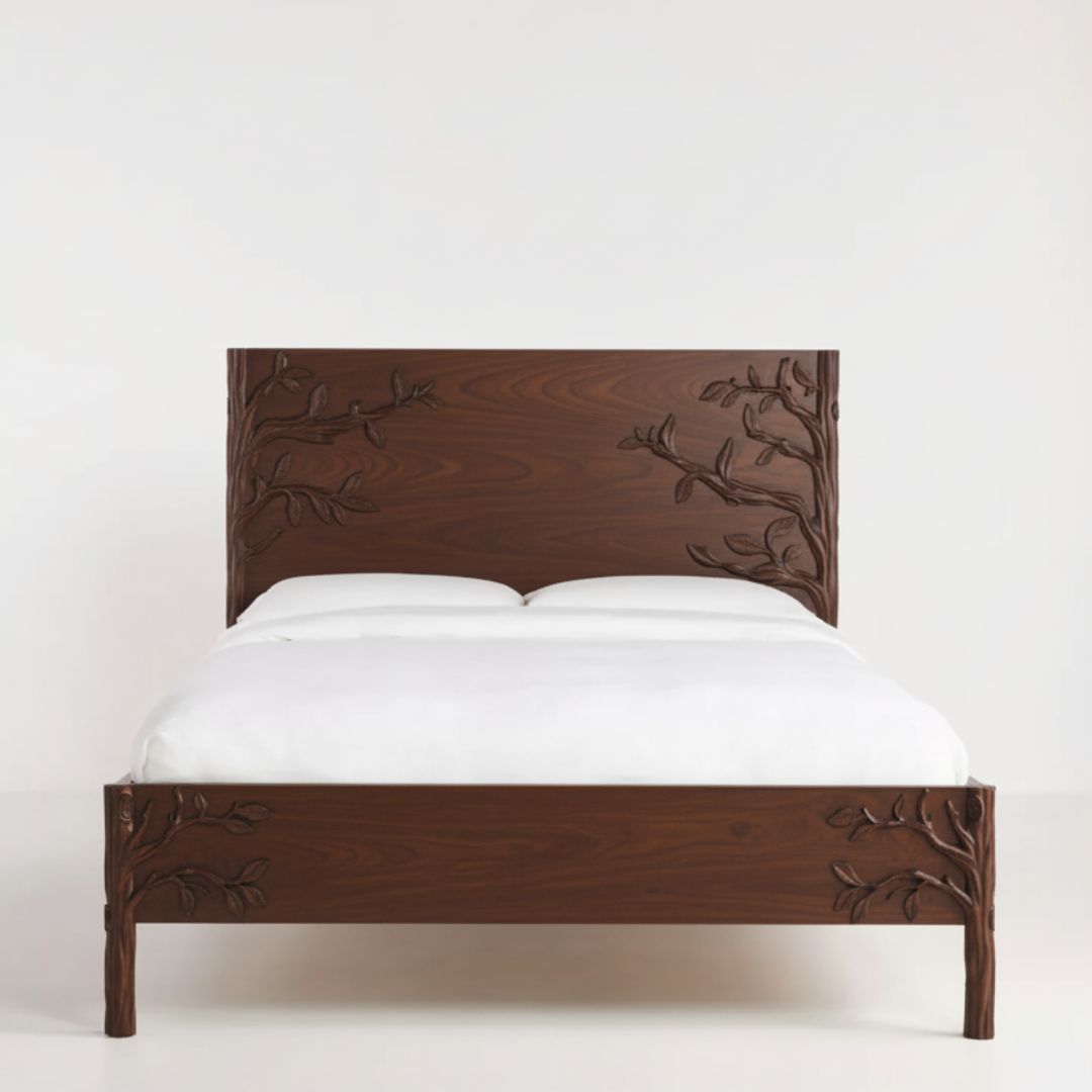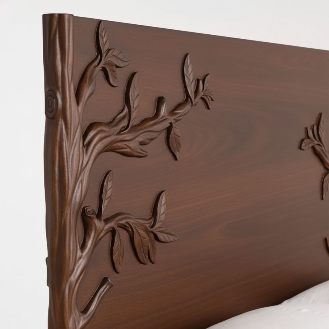 This exquisite Flora Solid Wood Hand Craved Platform Bed depicts a serene scene on a treetop. Retro style clothing had an influence on it. It is the perfect statement piece, or set, for a creative retreat with a forest theme. Fans of the Ornithology series are raving about the exquisite craftsmanship and timeless heirloom qualities of this series.