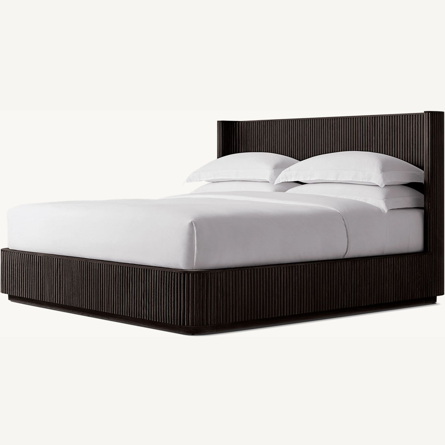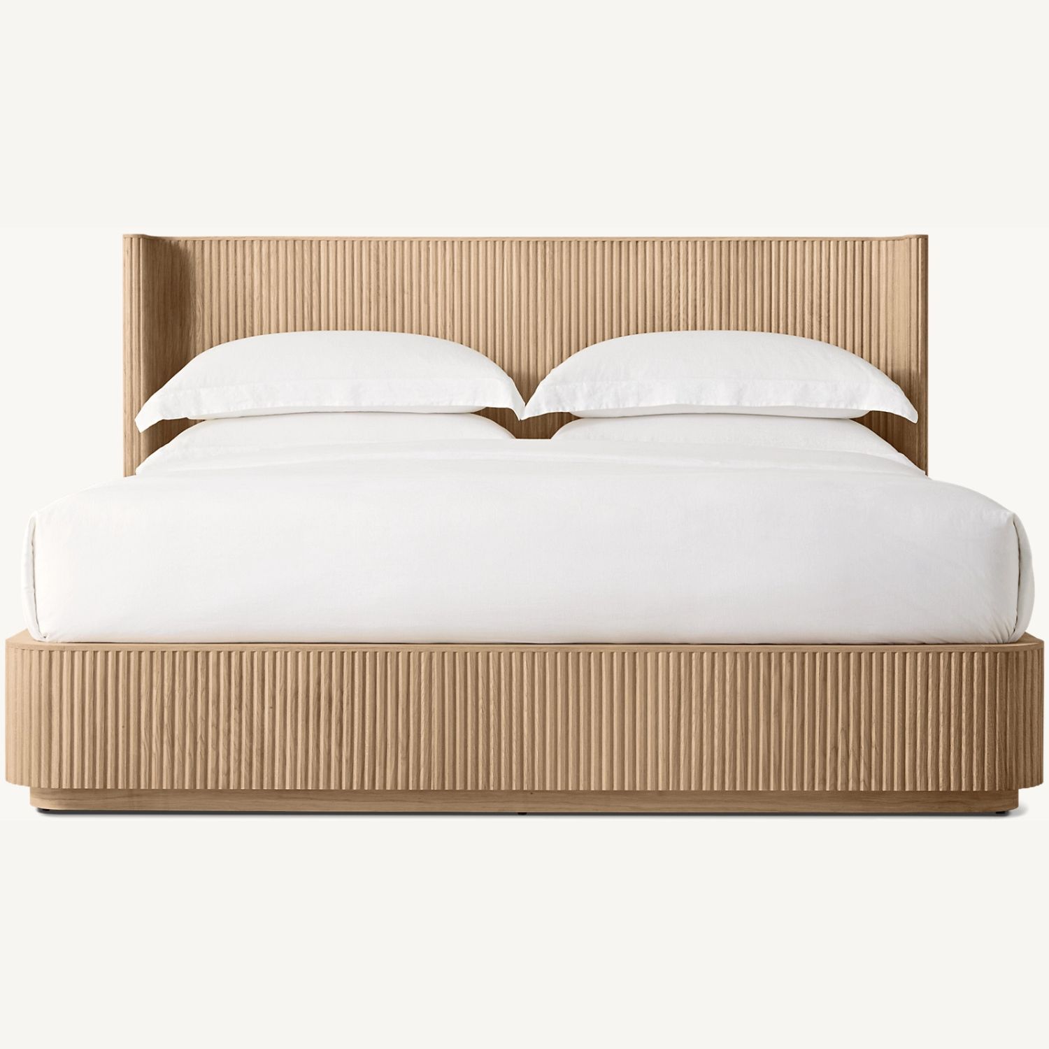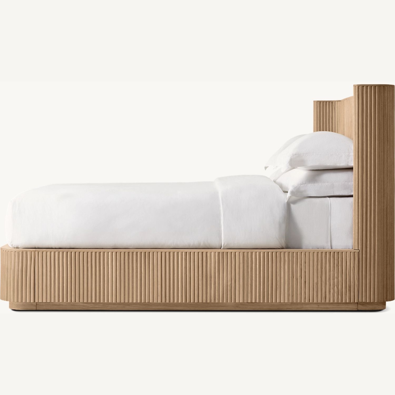 The bold shapes of our Ryan Collection recall the proportions and fluid curves of postmodernism, while vertical reeding lends a classical counterpoint. The geometric frames, crafted of Solid Wood, appear to float on recessed plinth bases, casting a crisp shadow line.