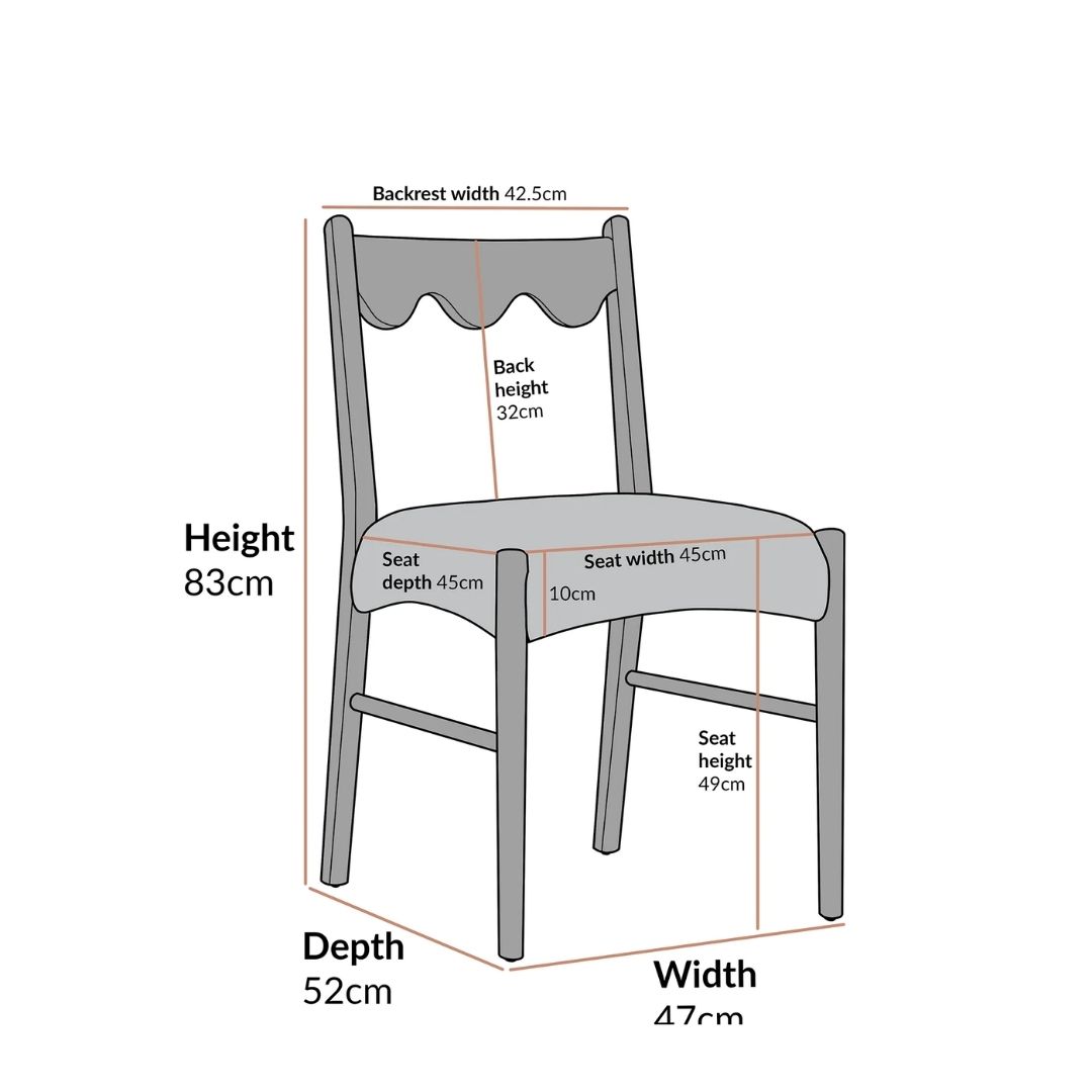 • Wavy back and rounded corners give the silhouette a light, organic presence, easy to pair with both traditional and contemporary tables.