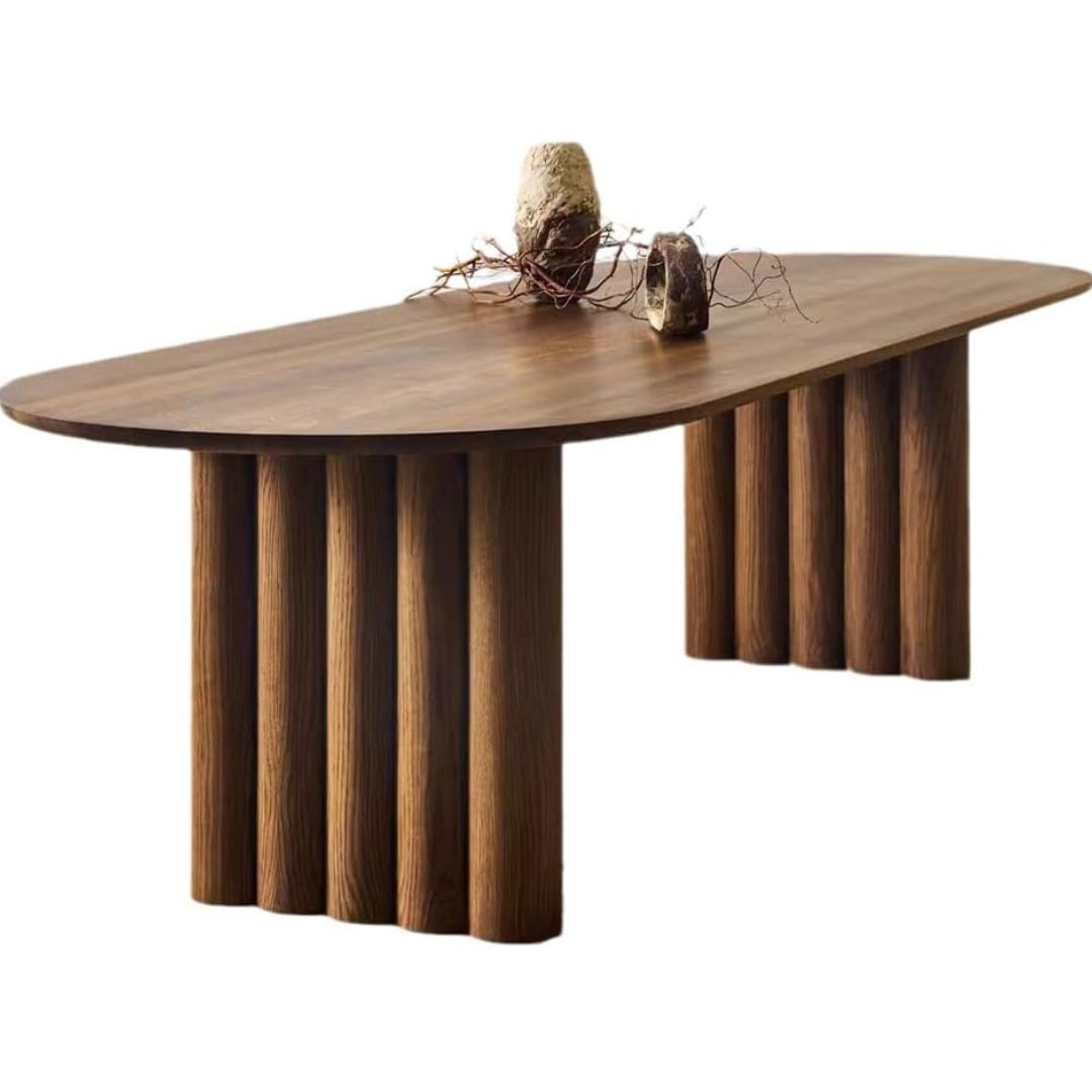 - The simple design of this Juna Solid Wood Modern 8-Seater Oval Dining Table offers a elegance to your home. Geometric style solid wood dining room table, whether it is used as a dining table or an office desk, you will have a good experience.