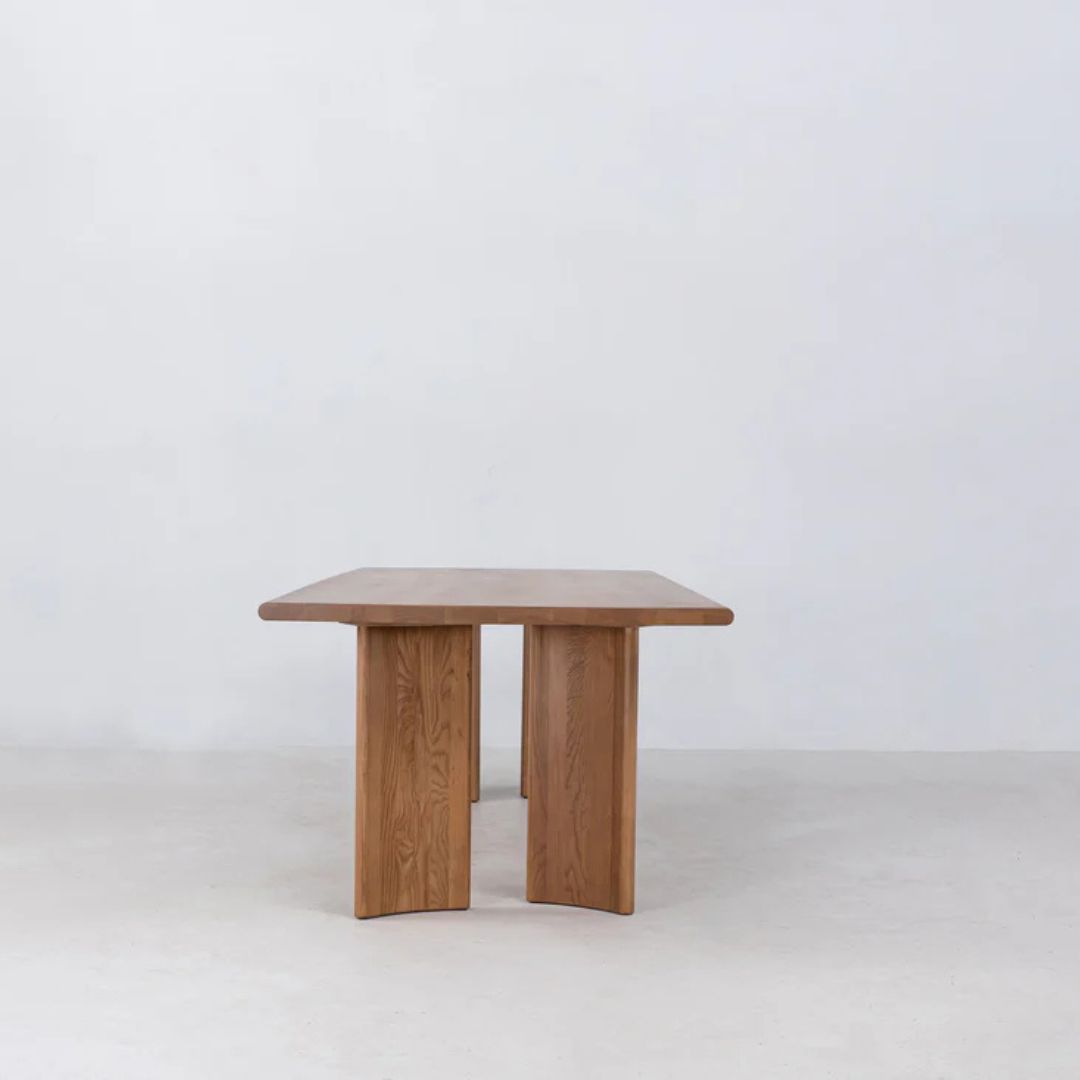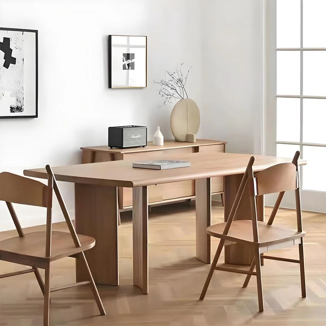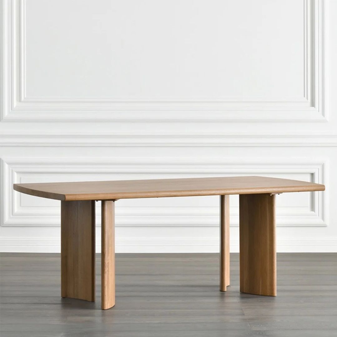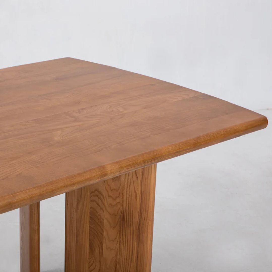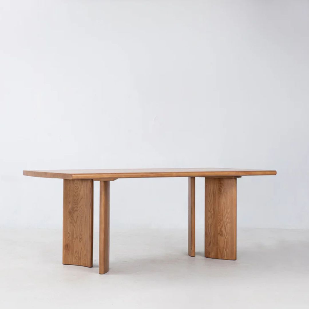 - Wide rectangular tabletop with flat surface, rounded corners and fine texture.