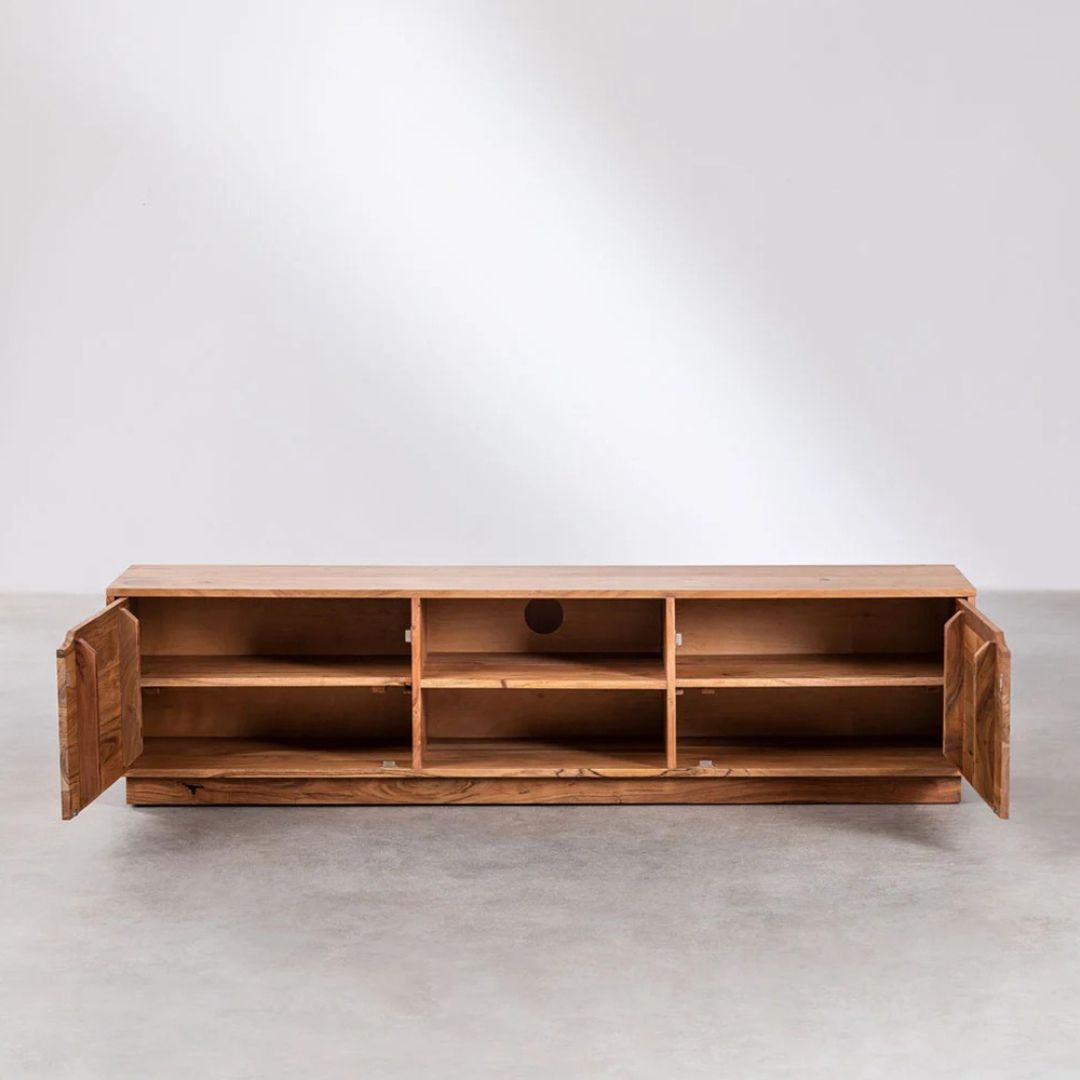 The decoration of your living room revolves around the television, for this reason, you must spend the necessary time to choose furniture that best suits your space. The Liva Solid Wood TV Cabinet with Shelf is the ideal option for audiovisual lovers, it has a central shelf that allows you to keep all your devices within sight. It is completely made of acacia wood, a material that stands out for its robustness and natural beauty. It is a truly original piece featuring open handles in different compartments of the furniture. It has a magnetic closure, a detail that increases the practicality of the piece.