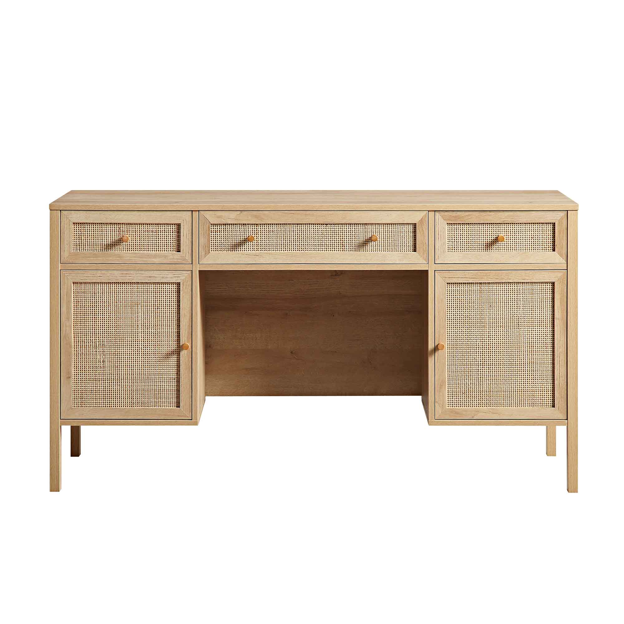 - Crafted from natural rattan and wood, our Classic Woven Rattan 3-Drawer Desk combines timeless styling with chic Scandi vibe.