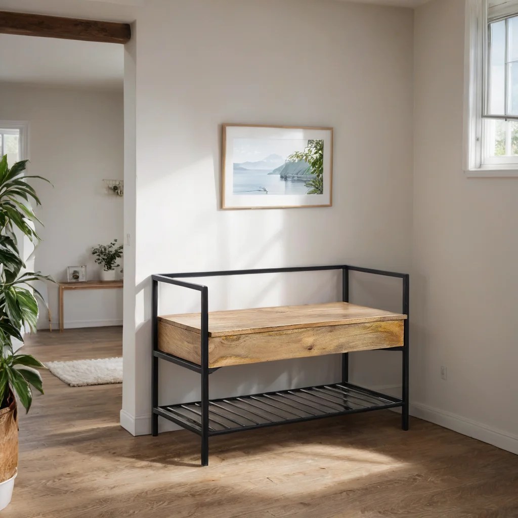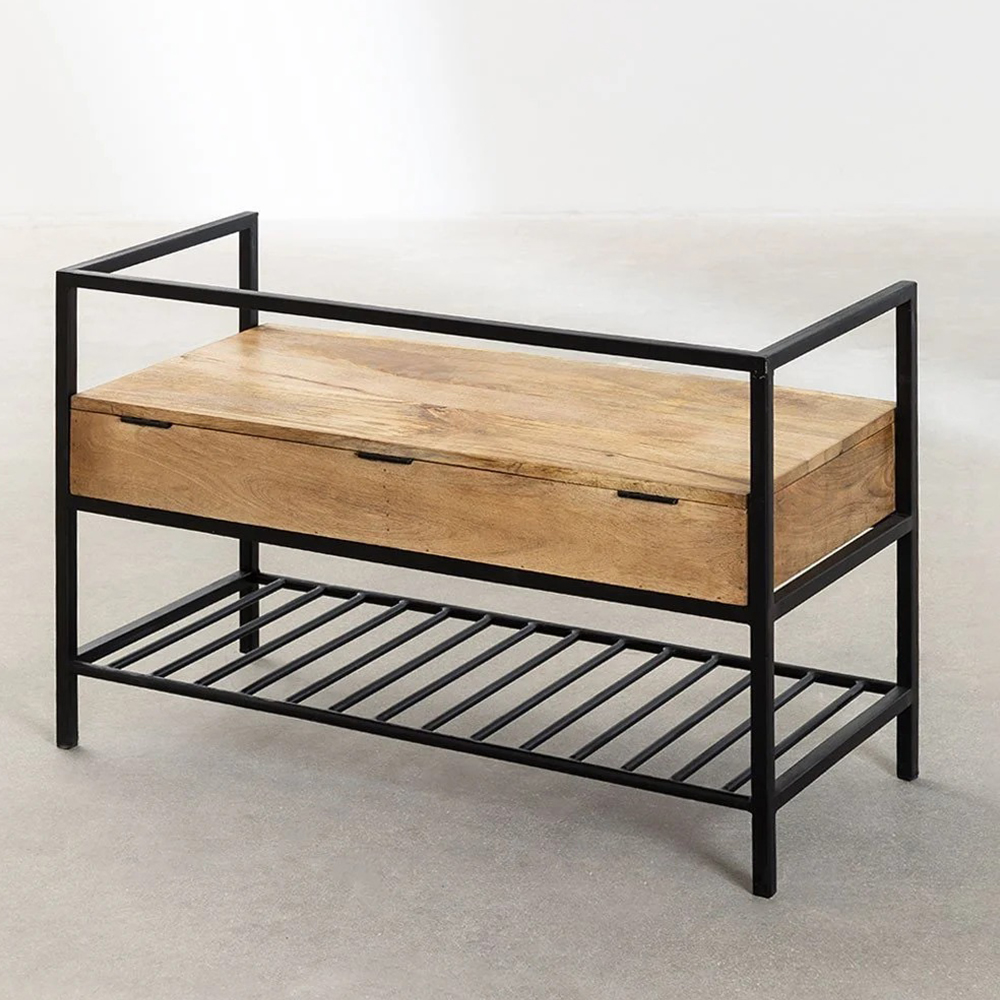 Maintaining order at the entrance of homes is a gesture that we all appreciate. With our Foxx Solid Wood and Metal Shoe Rack- we want to make it easy for you. Foxx Solid Wood and Metal Shoe Rack is a bench that has a folding seat that offers us extra storage space, where you can store all your accessories. It is made of solid wood with an iron structure and combines perfectly in all decorative styles providing an industrial touch.